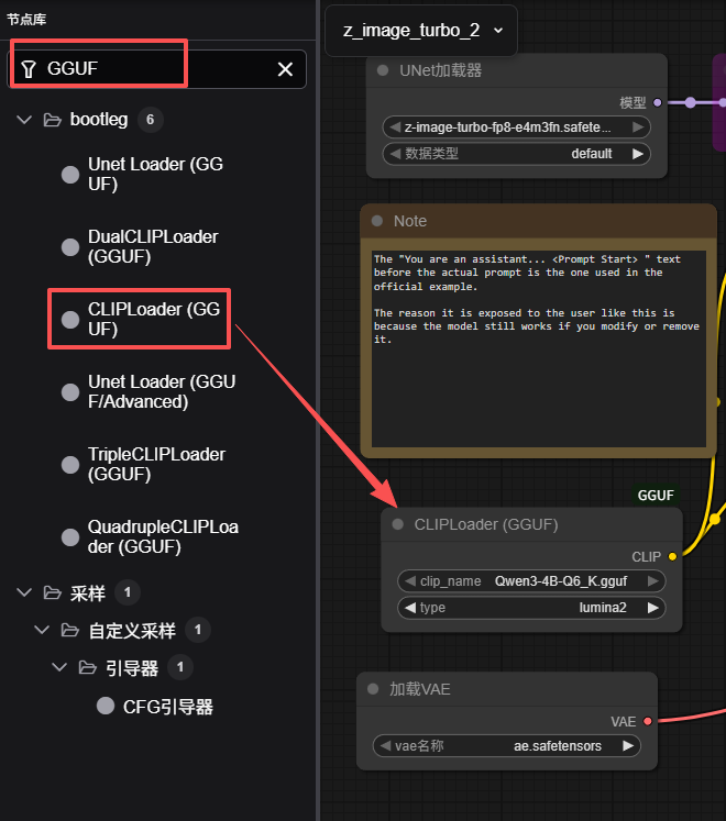 - CLIPLoader:选择你下载的 GGUF 文件(这个需要更换节点,使用 CLIPLoader(GGUF)节点)